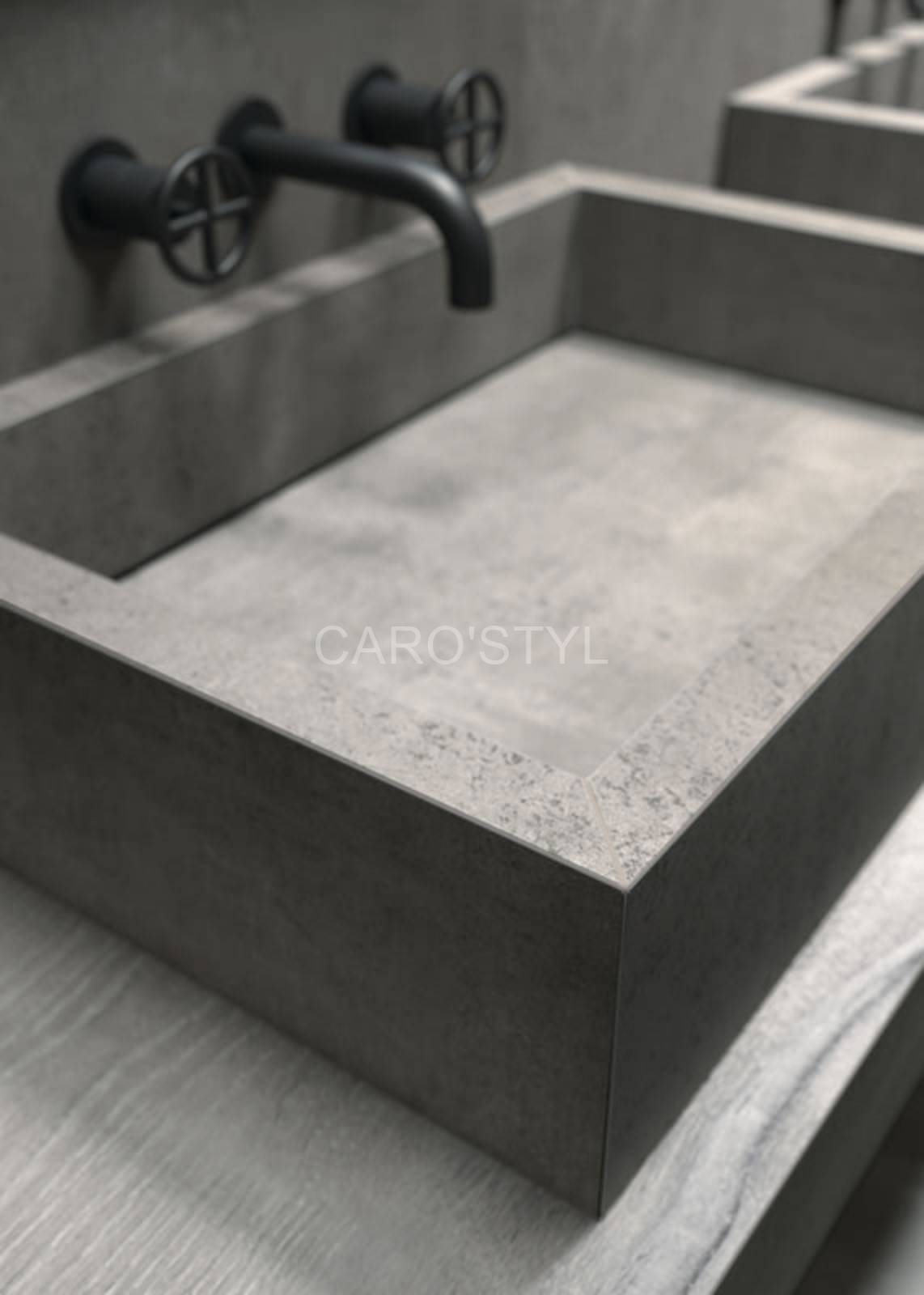 Fabriquée à partir de plaques de grès cérame découpées, recomposées et collées avec précision, cette vasque allie esthétisme et durabilité.