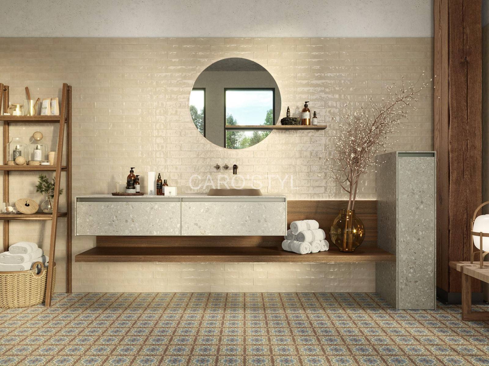 Cette inspiration de zelliges artisanaux marocains est disponible en 2 formats 6,20x25cm et 10x10cm et 2 finitions : brillante et mat.