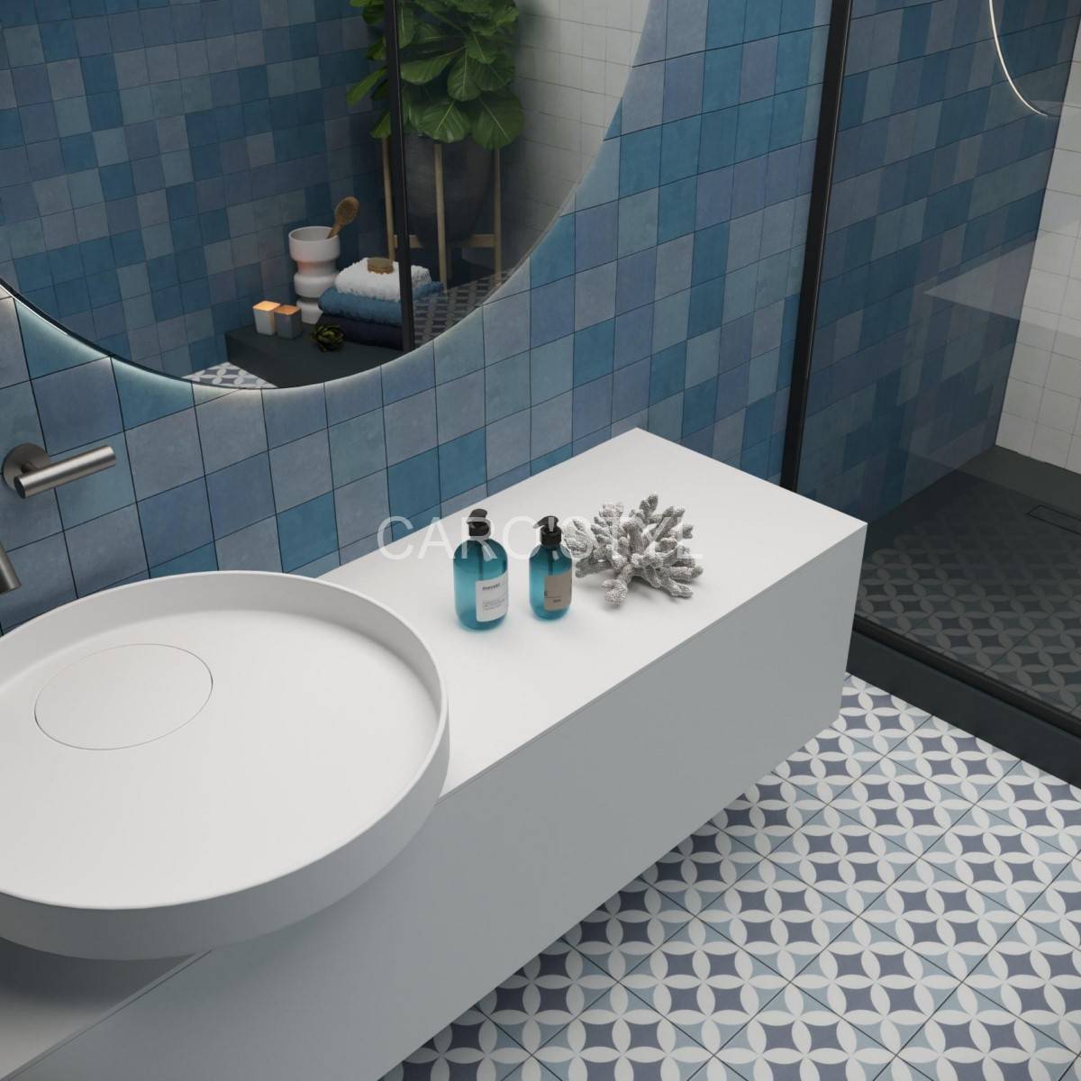 Ces carreaux, inspirés des zelliges artisanaux marocains ont une particularité, ils détiennent des bords vifs et un calibrage parfait pour être posés sans joints à la méthode des véritables zelliges marocains.