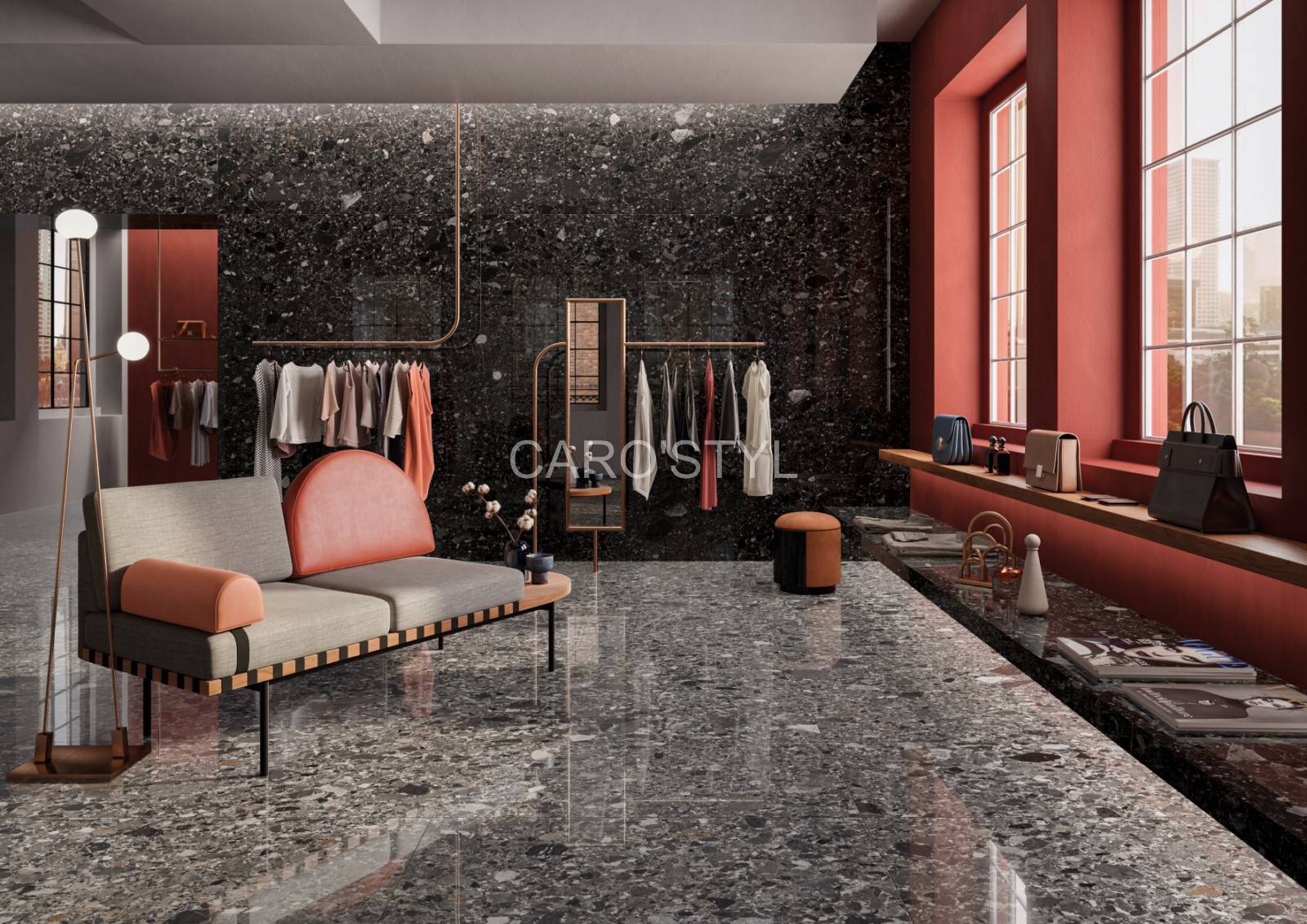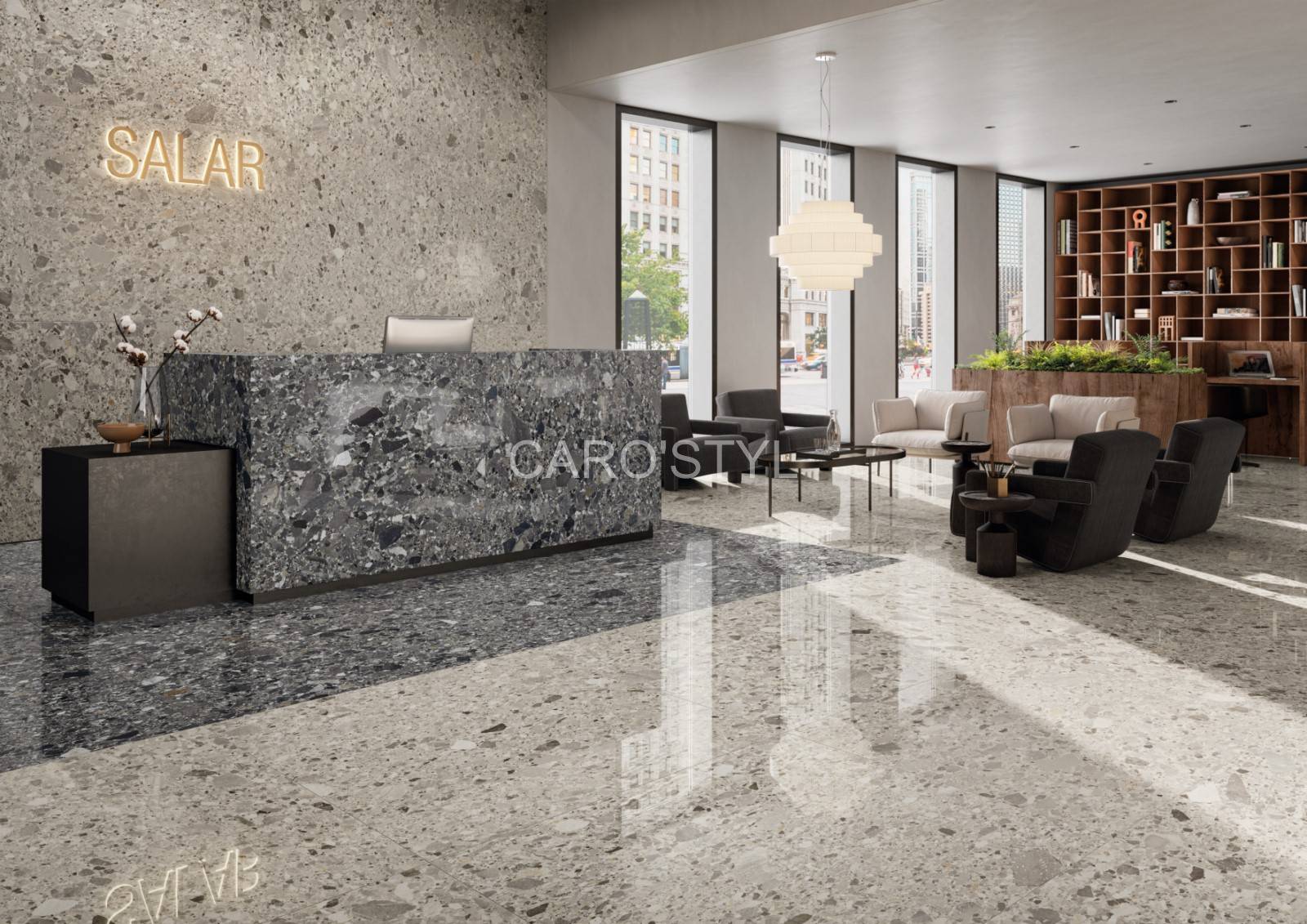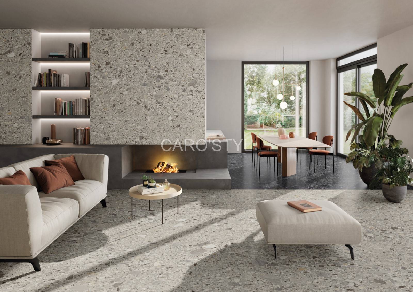 la série est parfaitement adaptée aux grandes pièces comme aux lieux plus petits. L'éclat de ce carreau "poli miroir" propose une alternative à la beauté classique de la pierre naturelle, tandis que la polyvalence de la surface "naturelle" en fait une solution ultra tendance.