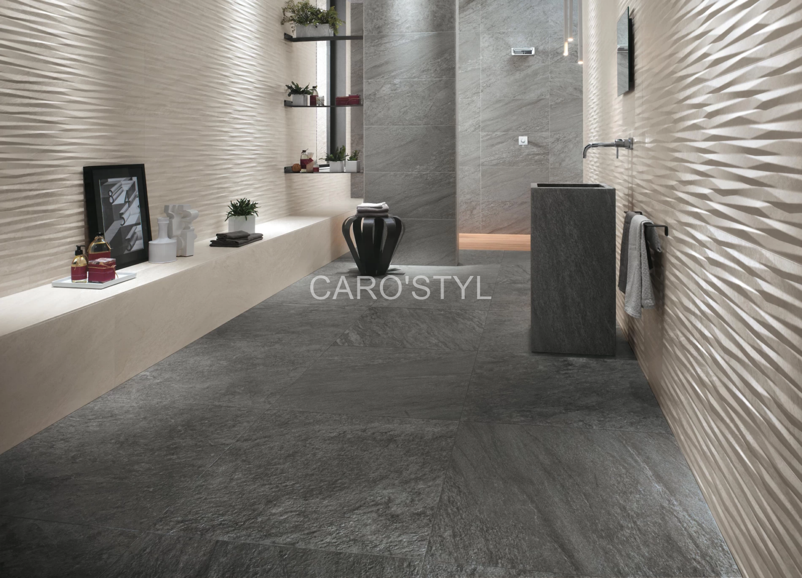 Cette série Brave comporte de nombreux formats, coloris et design différents au mur comme au sol, avec des effets en relief 3D notamment.