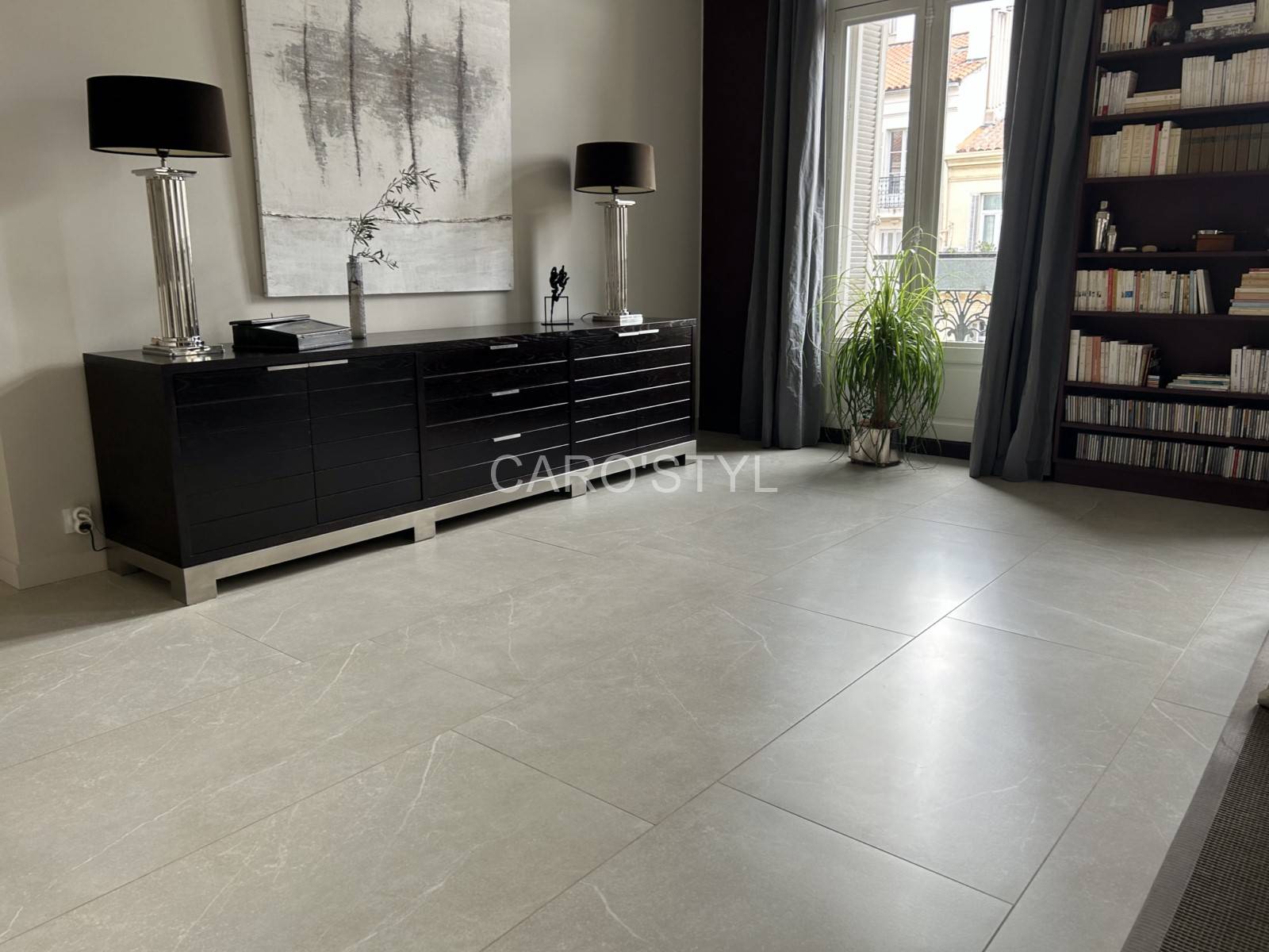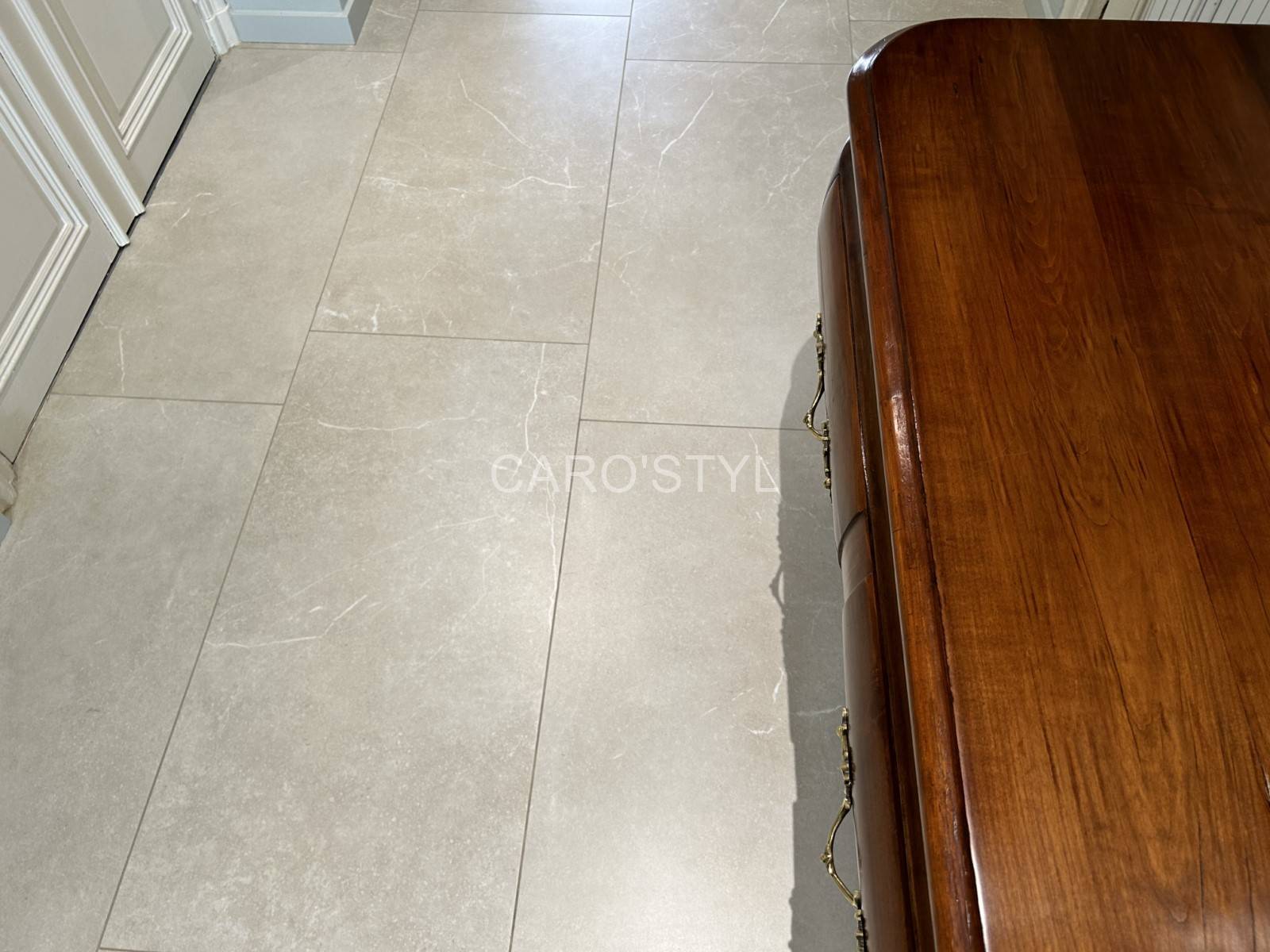 Le mariage entre l’architecture classique des appartements de style haussmanniens et notre carrelage en grès cérame sweet stone offre une élégance intemporelle à l’espace choisi.