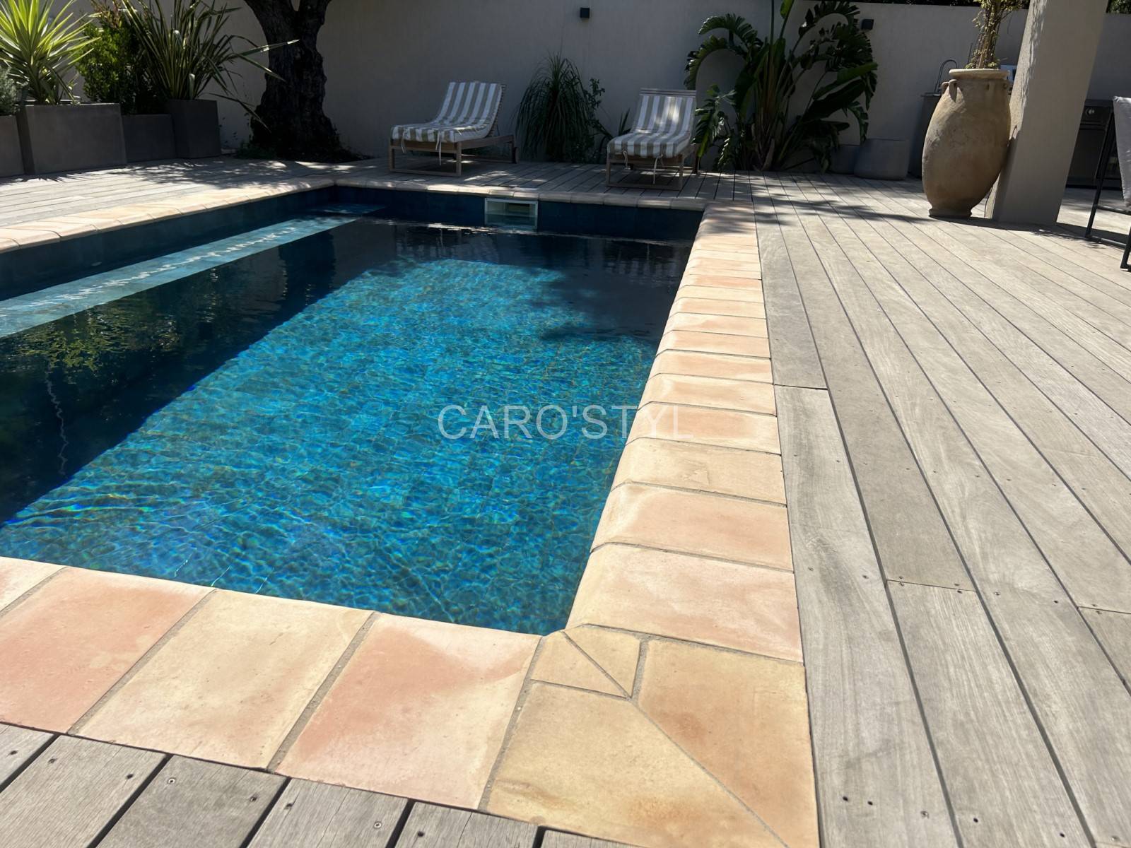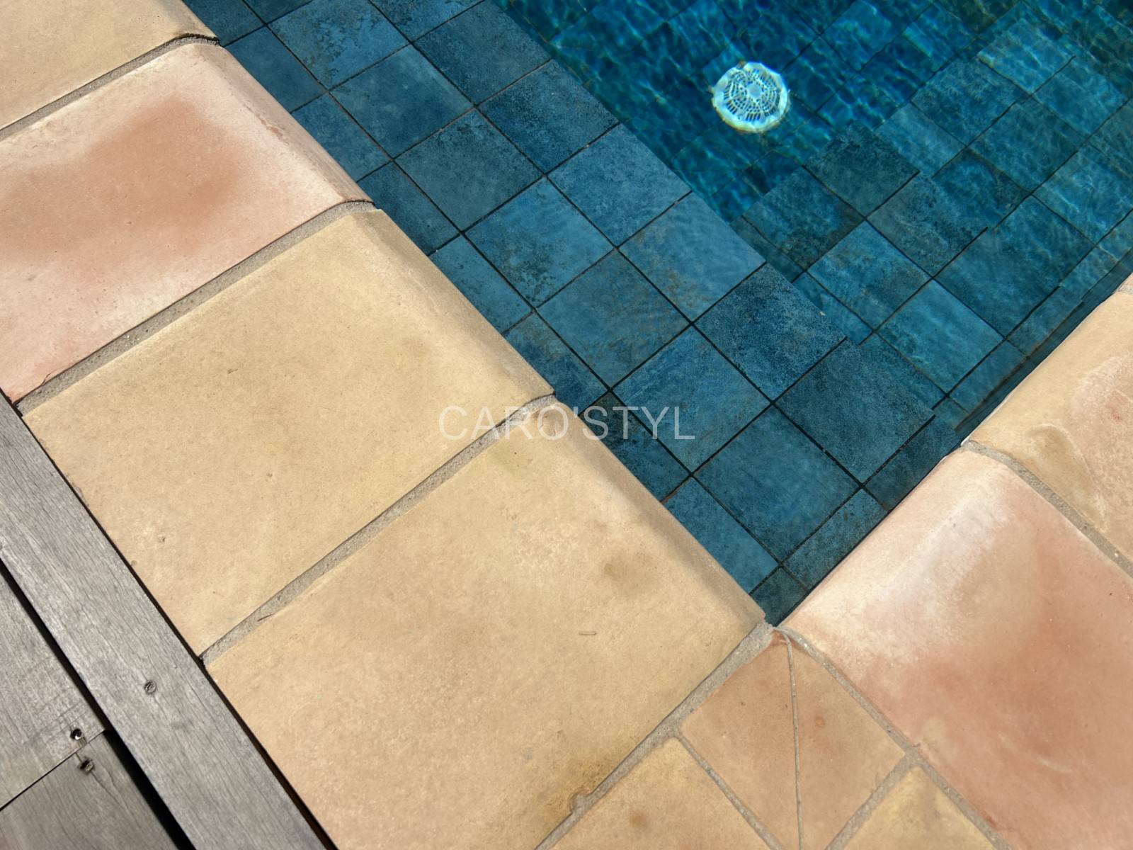 L’aménagement de votre piscine avec nos margelles en terre cuite en sus des carreaux intérieurs artisanaux apporte une belle harmonie visuelle à votre environnement dans le Var.
