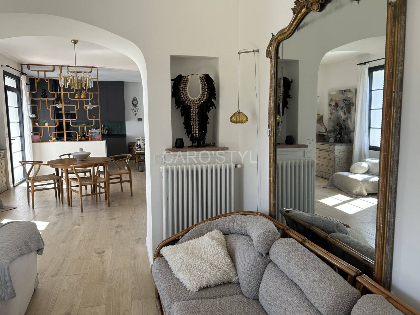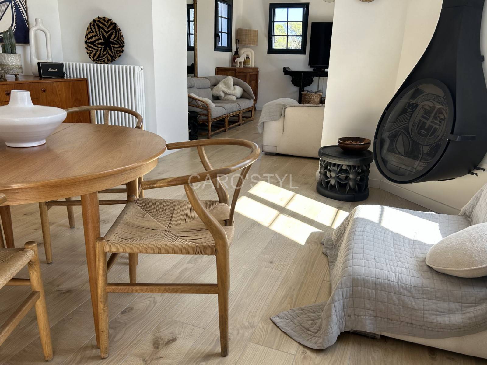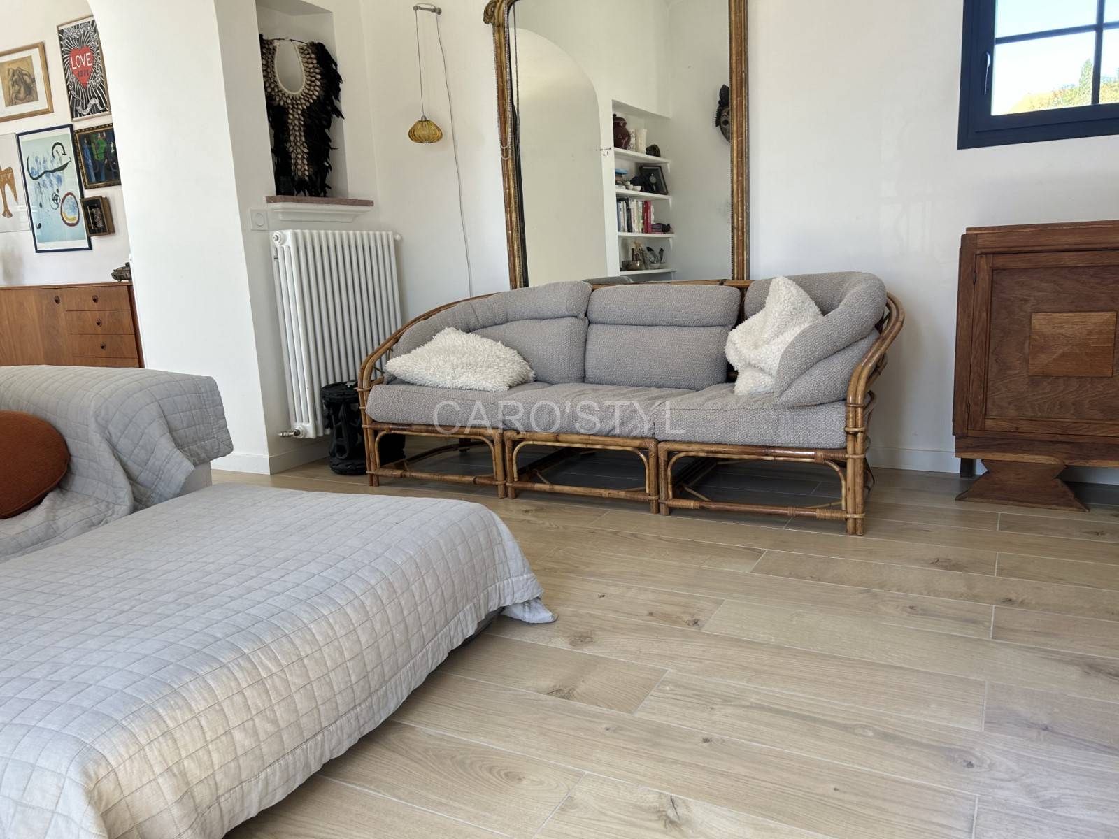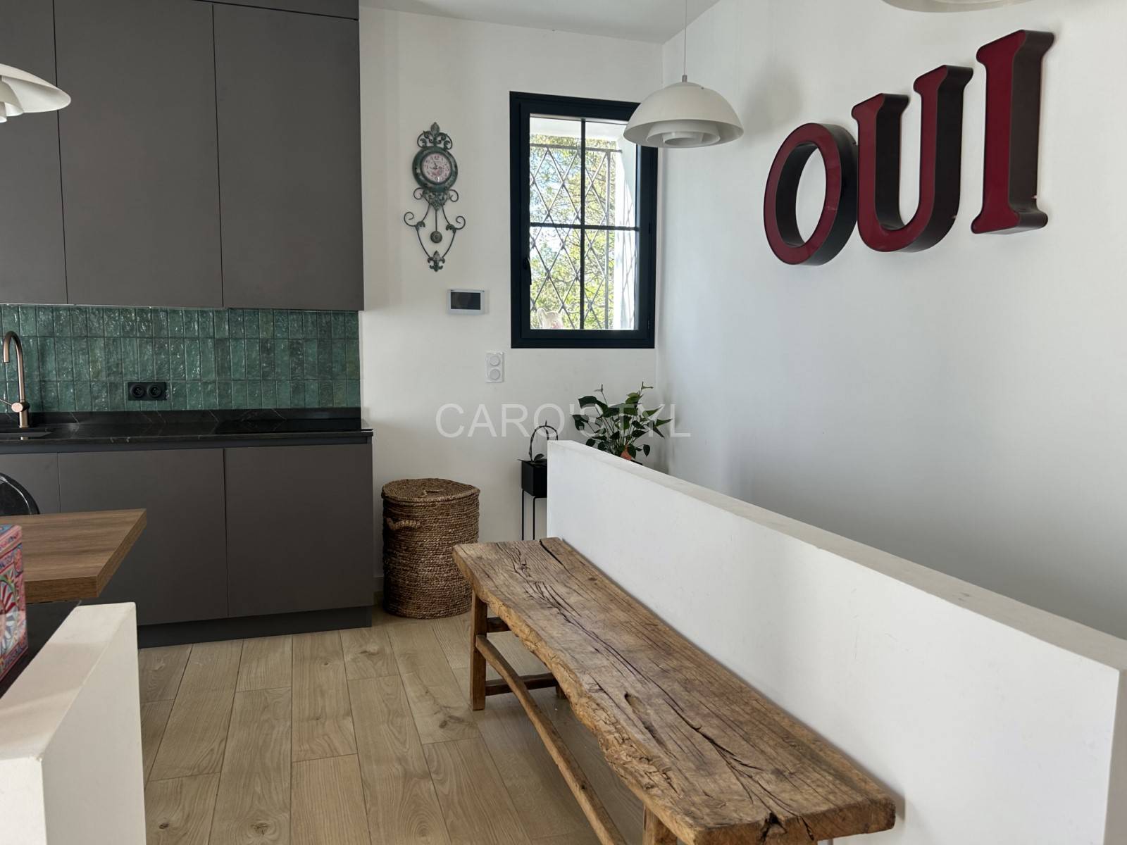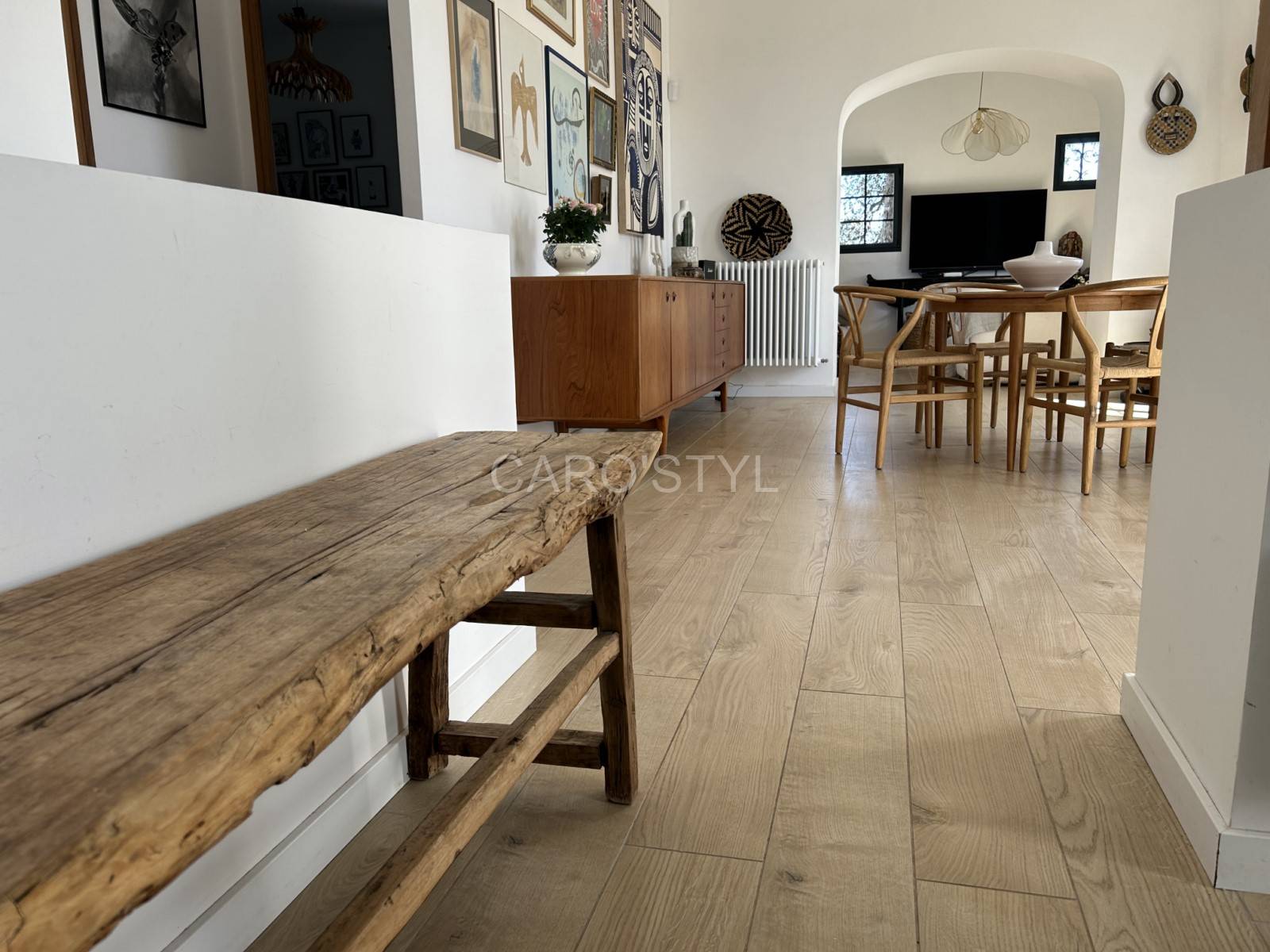 Transformez votre sol dans le 83 avec notre carrelage en grès cérame. Son effet parquet en chêne naturel révèle les intérieurs. A associer avec des meubles chinés, à un vieux banc en bois rustique comme ici présenté, pour créer une ambiance des plus chaleureuses.