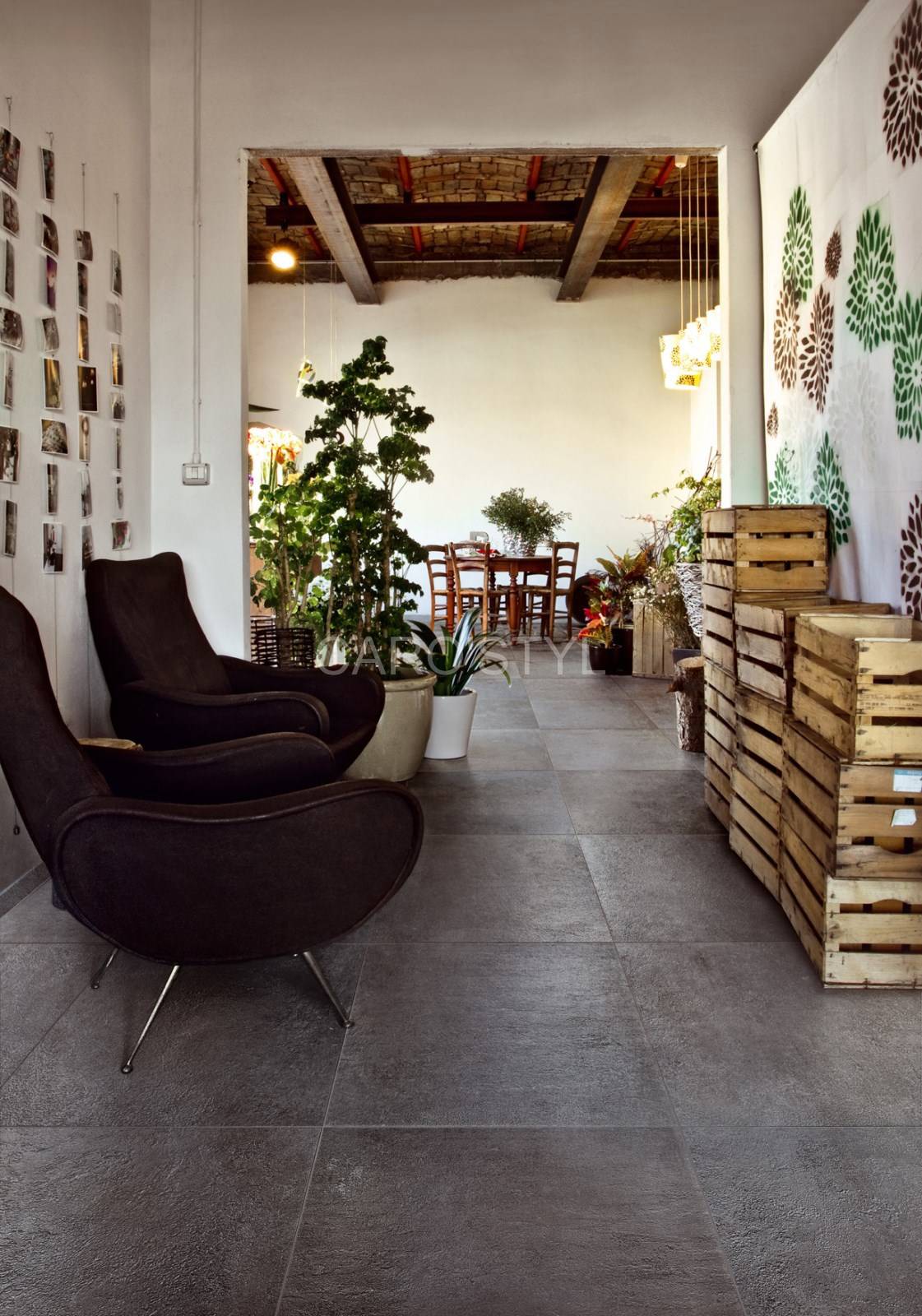 Le carrelage d’apparence terre cuite, retrouve une finition de surface inspirée des terres cuites espagnoles, finies à la main avec des traces de doigts pour apporter un effet de matière en mouvement.
