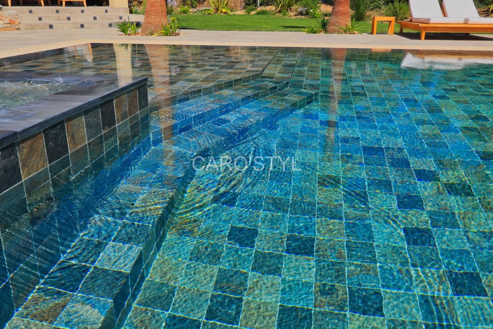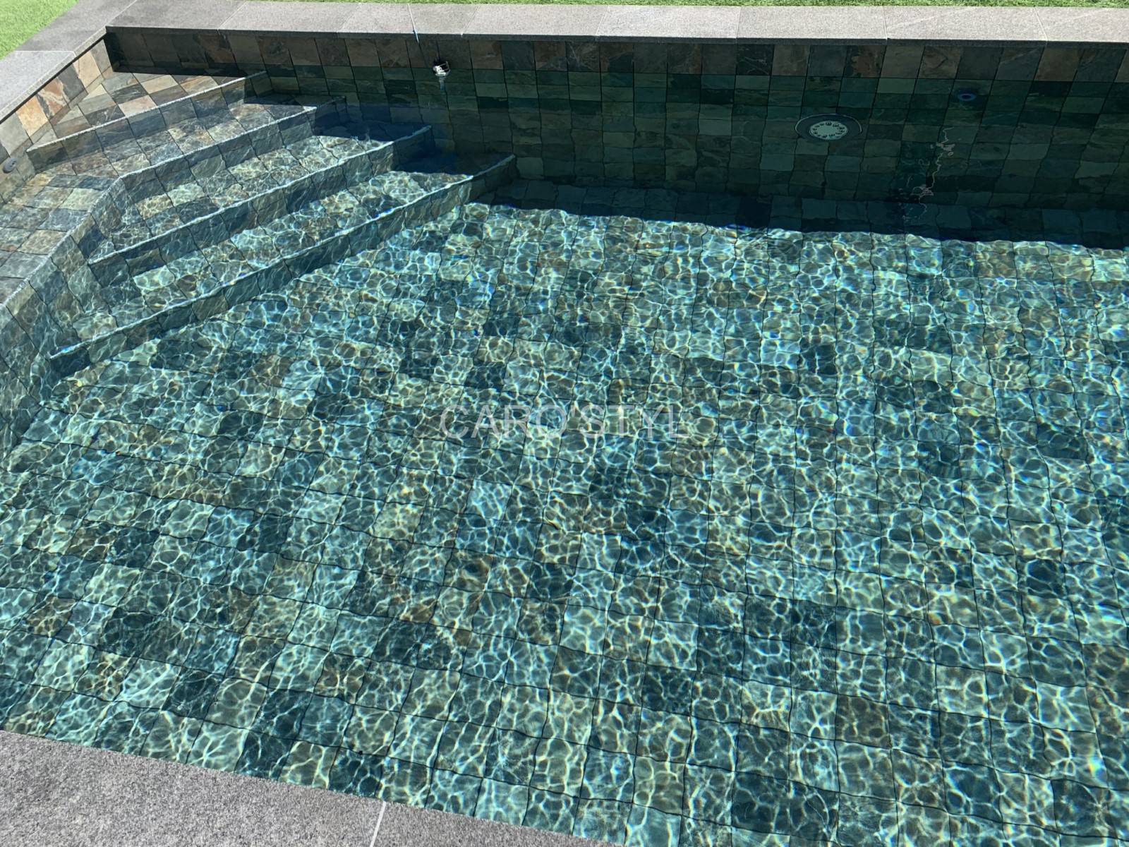 Caro'Styl, professionnel du revêtement et de la piscine vous propose ce carrelage Green Bali® au meilleur prix, et en grande quantité. Vous avez également la possibilité de terminer votre piscine avec des margelles assorties, ou des margelles de piscine en pierre naturelle ! Effet garanti.