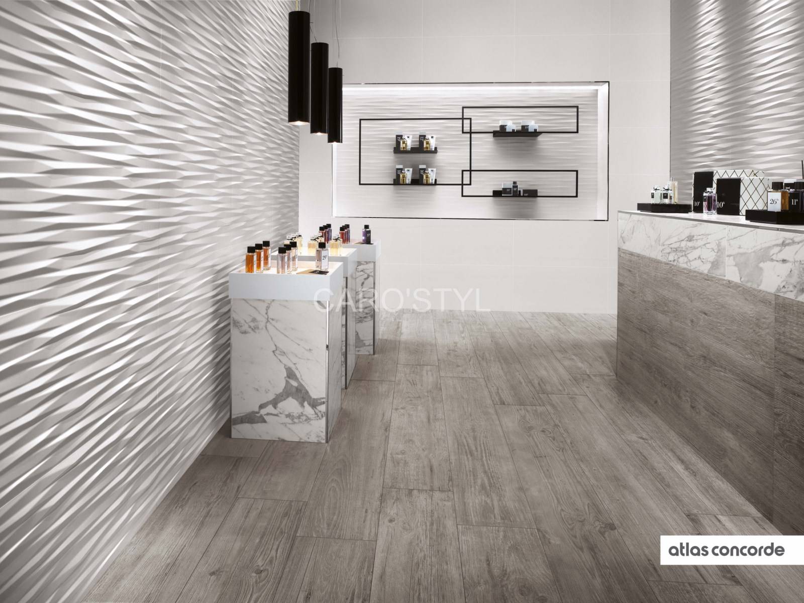 La série propose des jeux subtils d'ombre et de lumière particuliers avec un impact visuel très fort. Un effet sculptural vibrant, pour des surfaces en relief relevant un aspect décoratif idéal. Géométries épurées plus visibles, chaque motif a été étudié pour correspondre à un besoin décoratif.