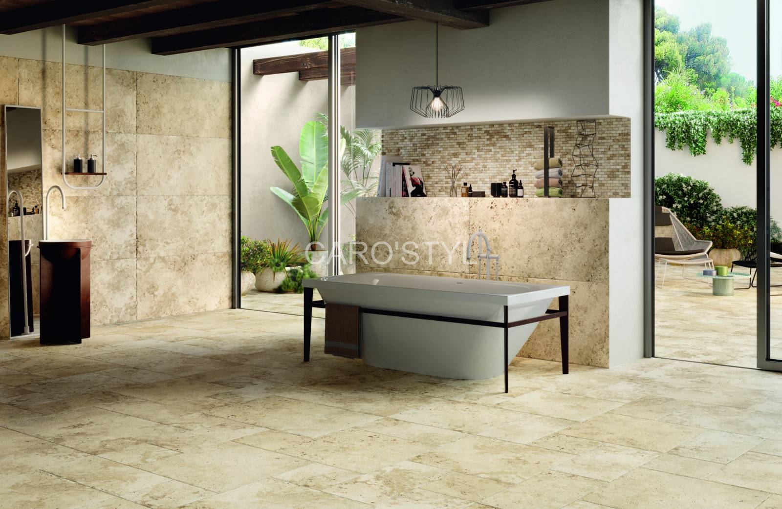 C'est pour cette raison que les fabricants de carrelage en grès cérame travaillent et réalisent des imitation parfaites, avec beaucoup de détails, permettant d'égaler certaines pierres naturelles dont le travertin !