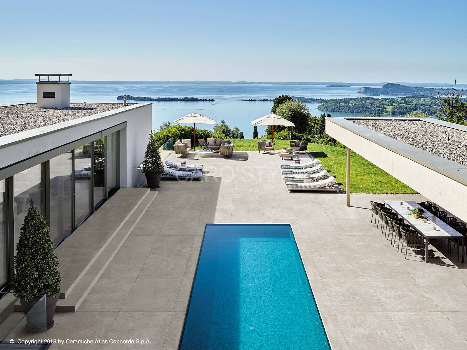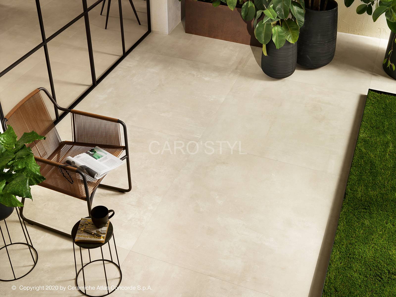 L'effet ciment gagne de plus en plus d'espace dans les maisons... A l'intérieur comme à l'extérieur. La finition antidérapante de ces carreaux et l'épaisseur de 20 mm (sur de grand format comme le 120x120cm) permettent d'utiliser cette série pour les terrasses en toute sécurité et en continuité !