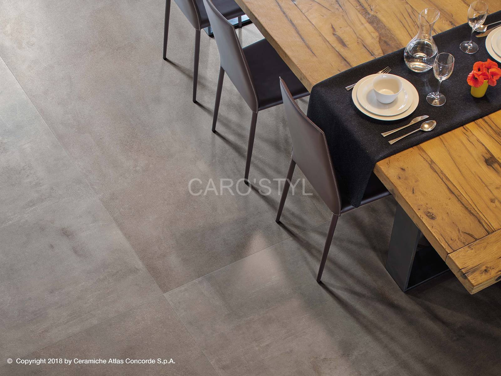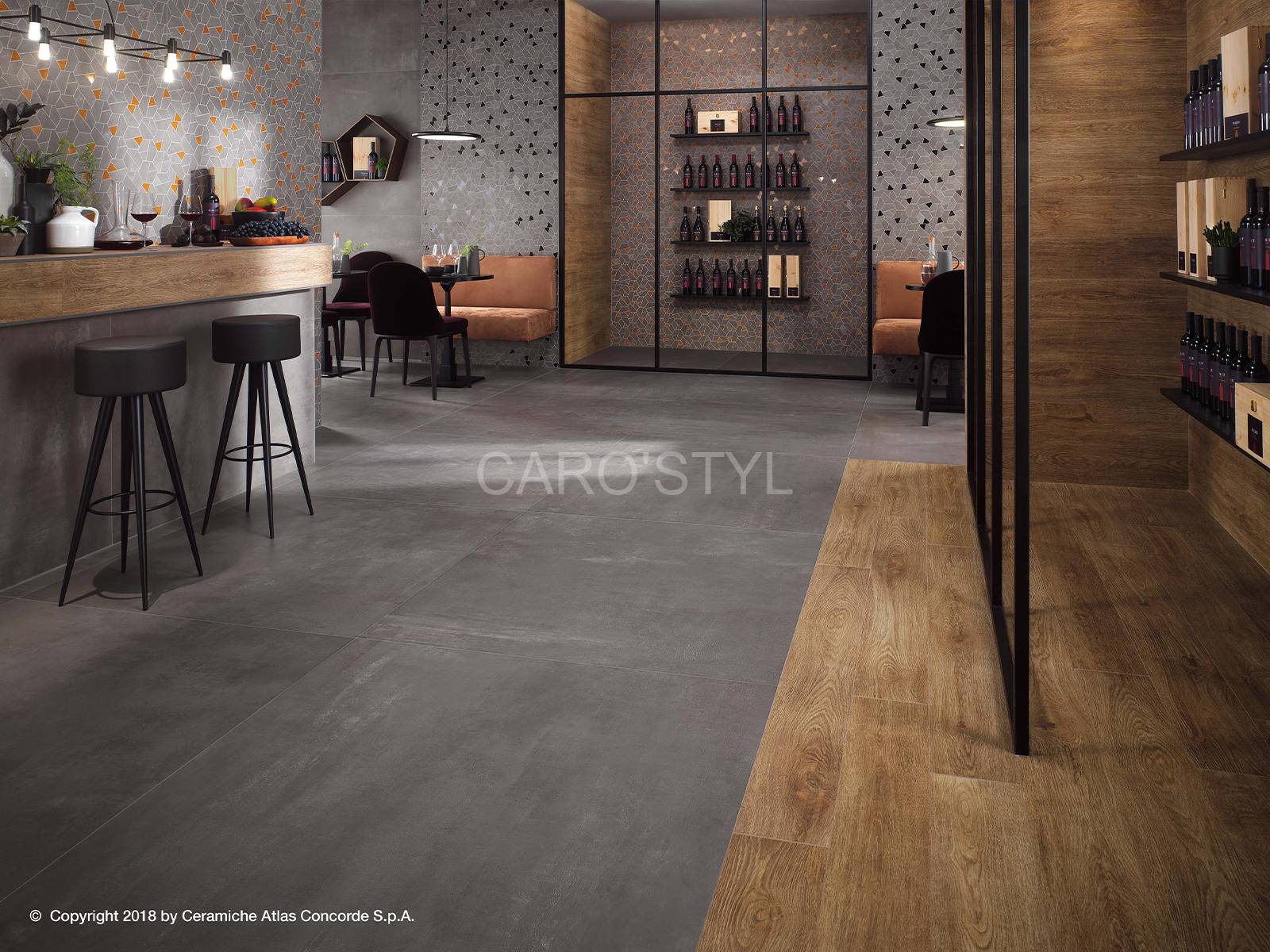 Cette nouveauté puise son inspiration dans le ciment, puisqu'il reproduit cet effet avec beaucoup de ressemblance. Cette collection est proposée dans un grand nombre de coloris, nous retrouvons deux sortes de tonalités, les tonalités chaudes et froides.