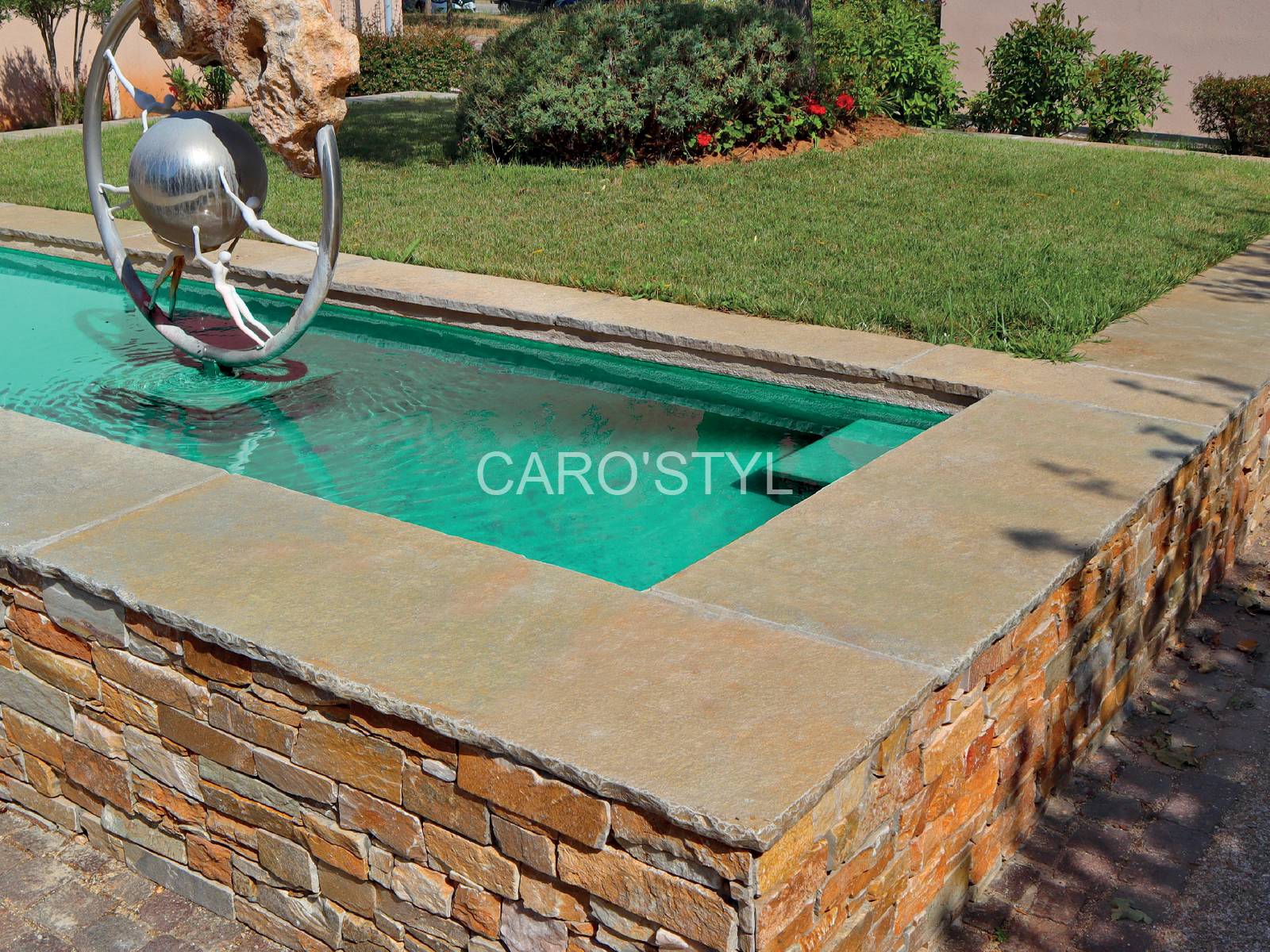 Cette pierre, conçue pour l'intérieur comme l'extérieur, se travaille très facilement puisque nous vous proposons toutes les pièces de ce même revêtement naturel :