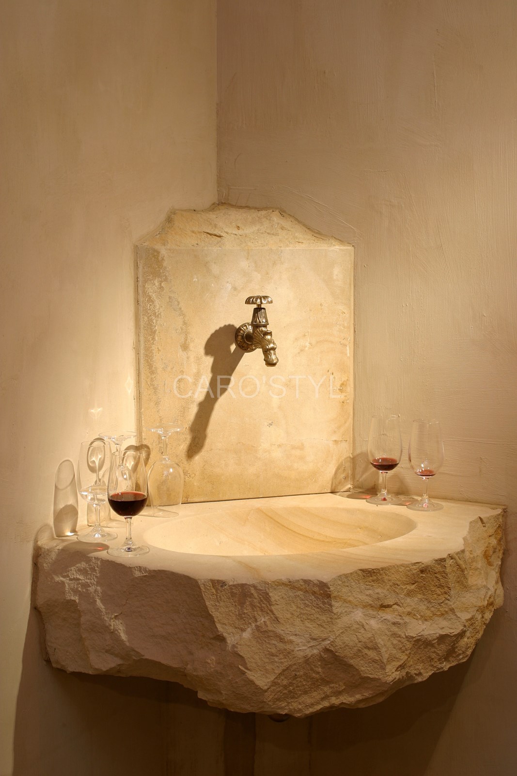 Ici nous vous proposons un lave-mains en pierre de Bourgogne, adouci à l'intérieur, et d'une face éclatée à l'extérieur, pour un aspect rustique, conseillé pour un mas provençal, ou votre cave à vin!