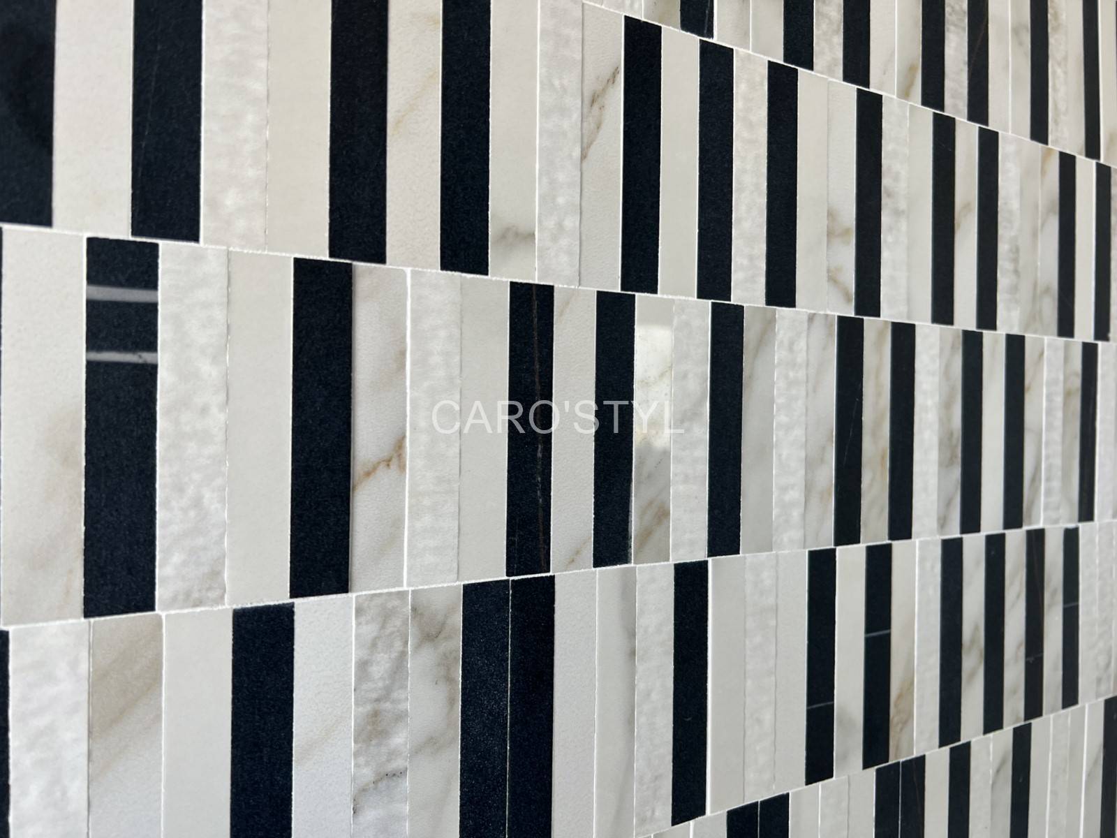 Ce format 60 x 120 cm met en évidence les différents mouvements des matériaux, en les propulsant pour une continuité visuelle des plus harmonieuses.