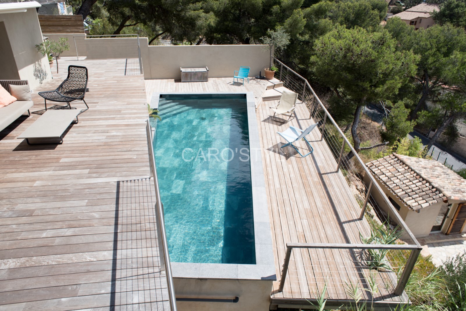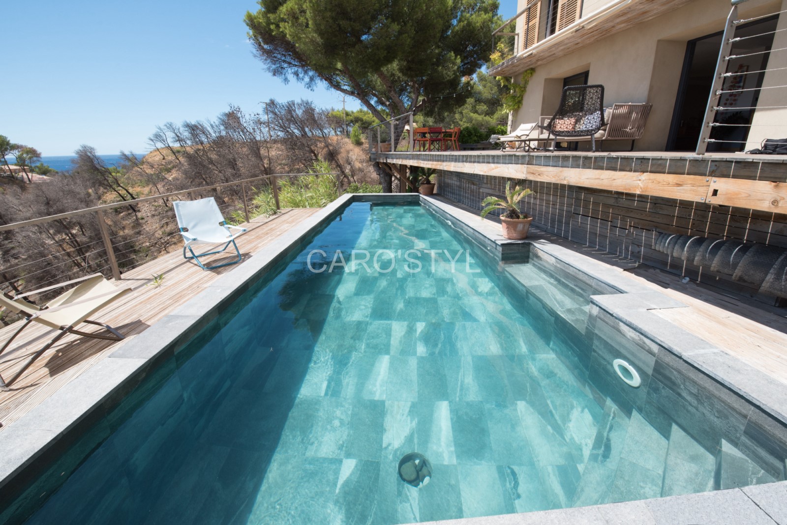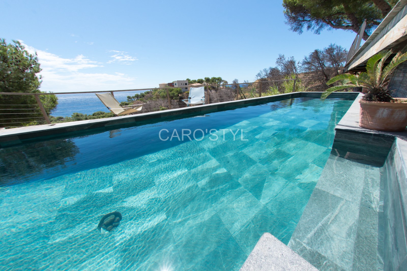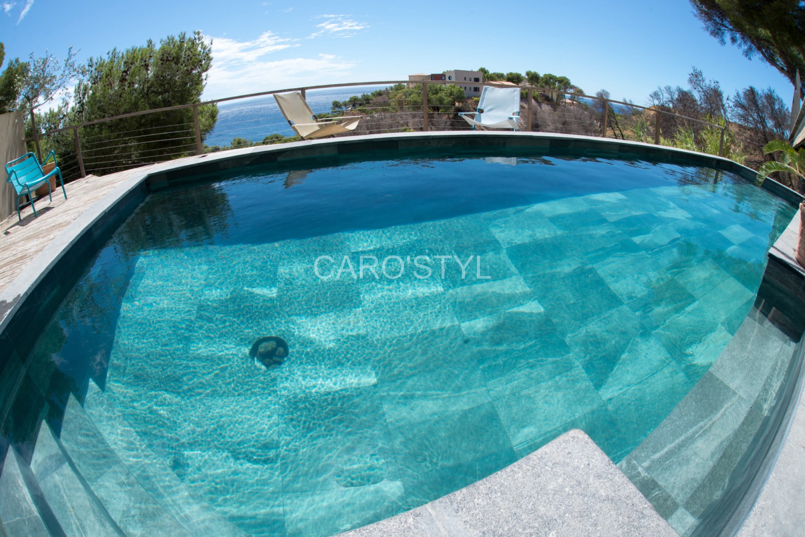 Une piscine en carrelage grès cérame anthracite! Une inspiration des plus belles ardoises Balinaises, des reflets verts, bronze, un dénuançage exceptionnel plus vrai que nature, avec les avantages d'un carrelage grès cérame :