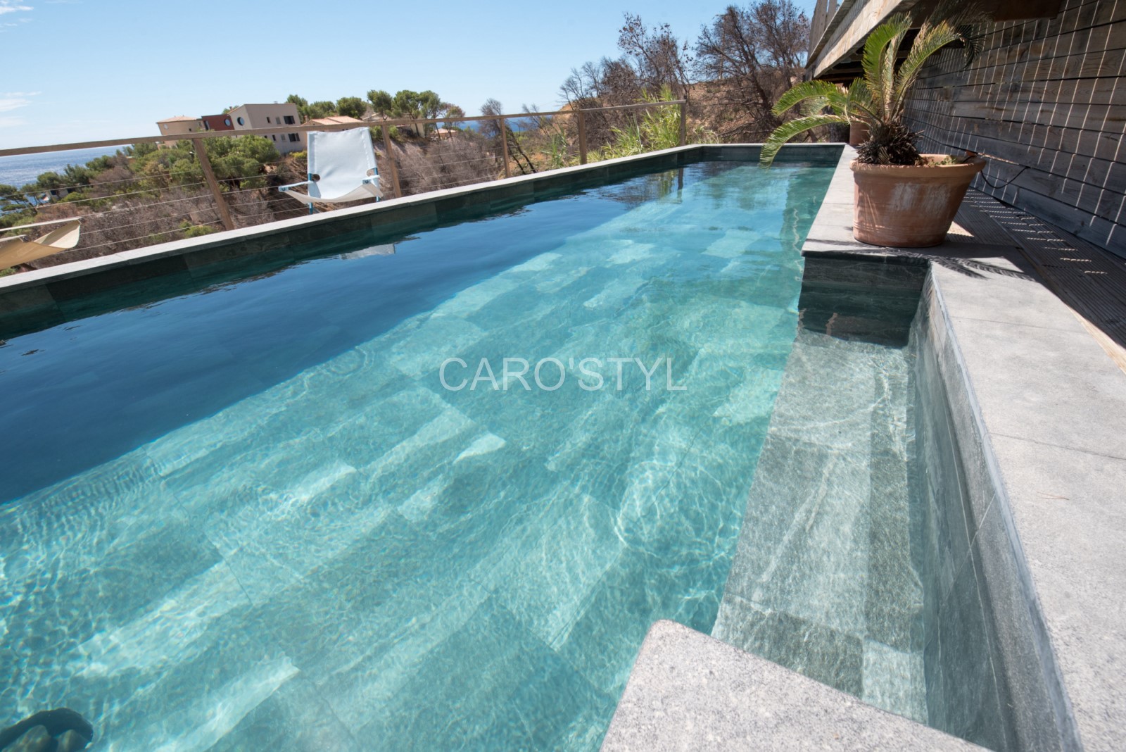 Caro'styl votre spécialiste de la piscine depuis plus de 20 ans, situé près de Gémenos 13 Bouches du Rhône, vous propose ce magnifique carrelage Java Green aspect ardoise noire de Bali, pour un bassin très tendance...